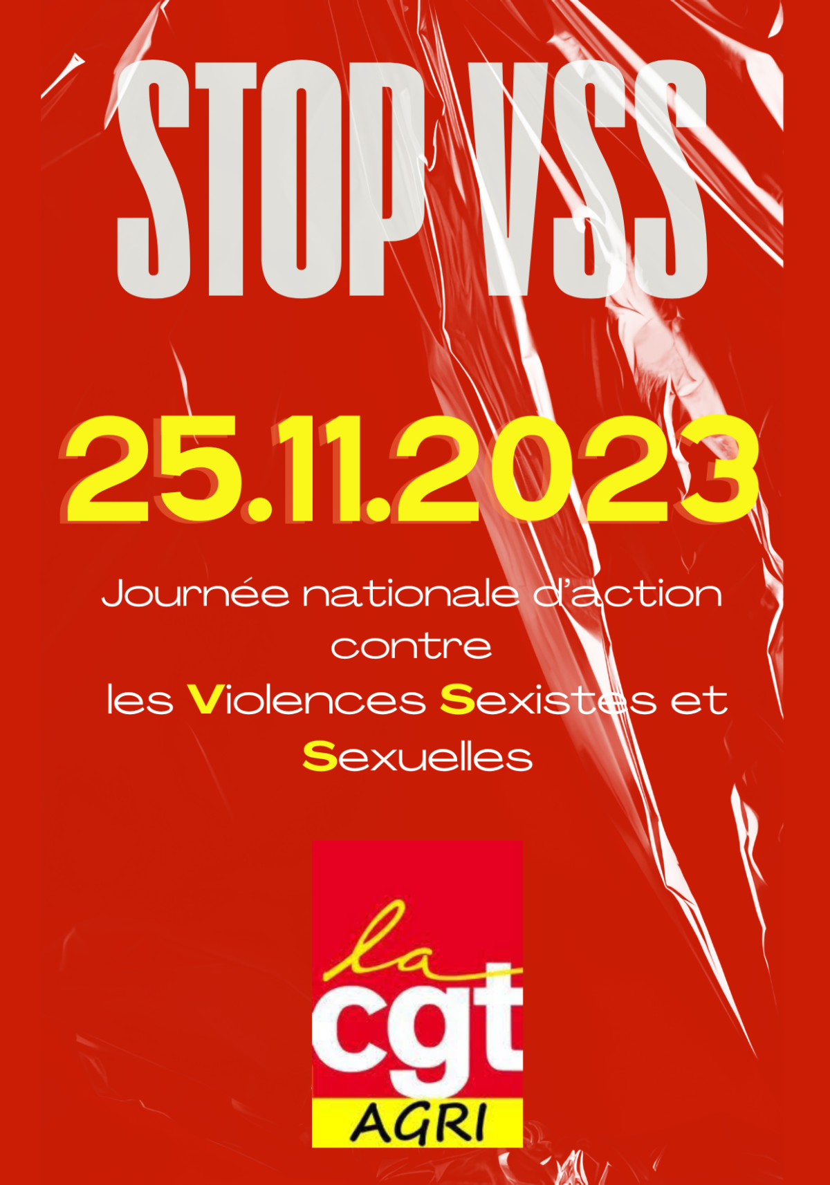 Affiche réalisée pour le syndicat CGT AGRI dans le cadre de la journée d'action nationale contre les VSS Violences Sexistes et Sexuelles 2023